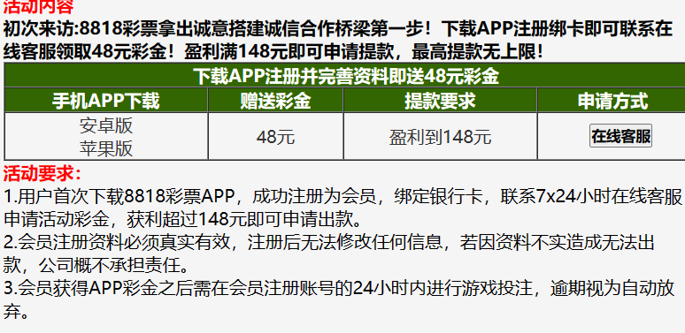 新用户下载APP注册完善信息,联系在线客服申请48彩金。148即可提现。具体自测