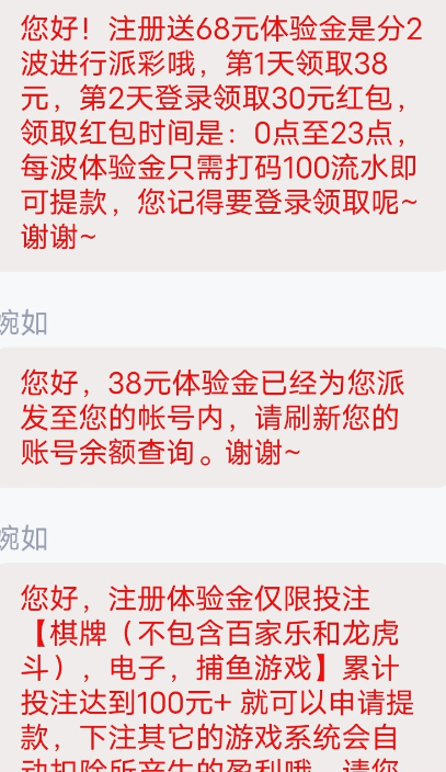活动详情:注册账号后等电话特邀/需要接听电话才会送68彩金分两次送完