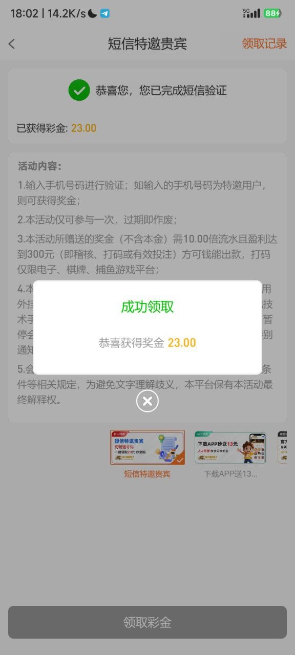 前几天发的,下载app彩金重置,之前领过的重新注册还可以申请,有兄弟反馈出款,去好几个兄弟也有,新用户特邀送23