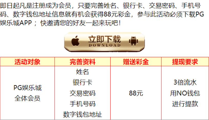 活动详情:新用户注册绑定信息,彩金需要完成3倍流水,只能提款NO钱包,出款自测,禁止充值!
